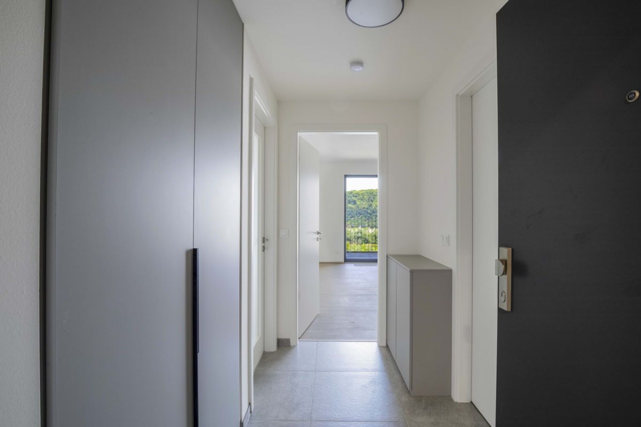 Vestavěné skříně v chodbě a ložnici – minimalistické řešení, teré elegantně zapadá do celkového prostoru.