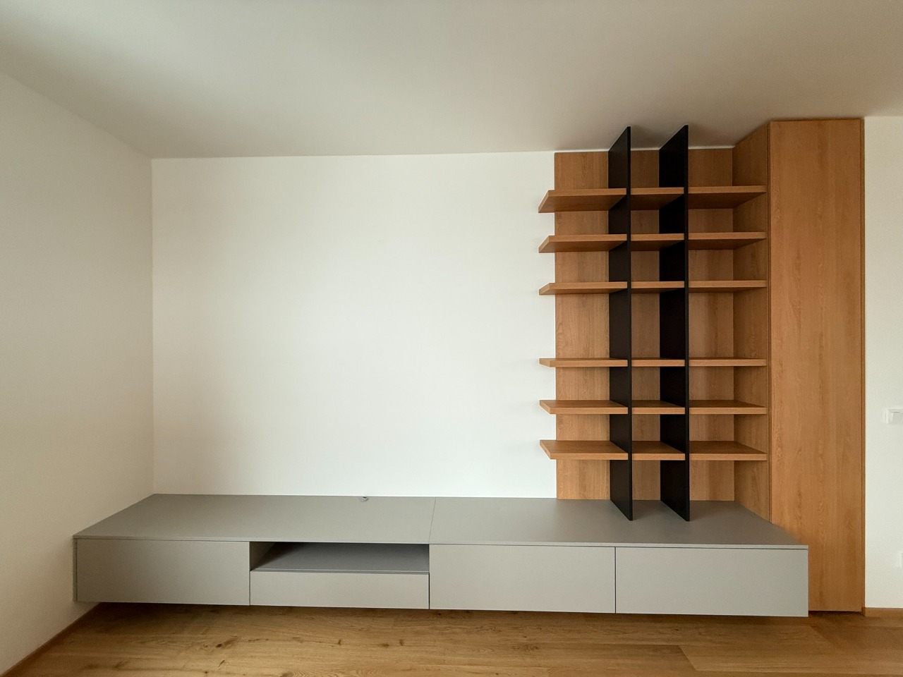 Klientem byla mladá rodina s dítětem, která se stěhovala do zcela nového bytu v 11. patře. Byt měl výborný základ, ale bylo potřeba ho vybavit kompletním nábytkem, který bude nejen ladit s architekturou prostoru, ale zároveň nabídne dostatek úložných míst, praktičnost a vizuální čistotu.
