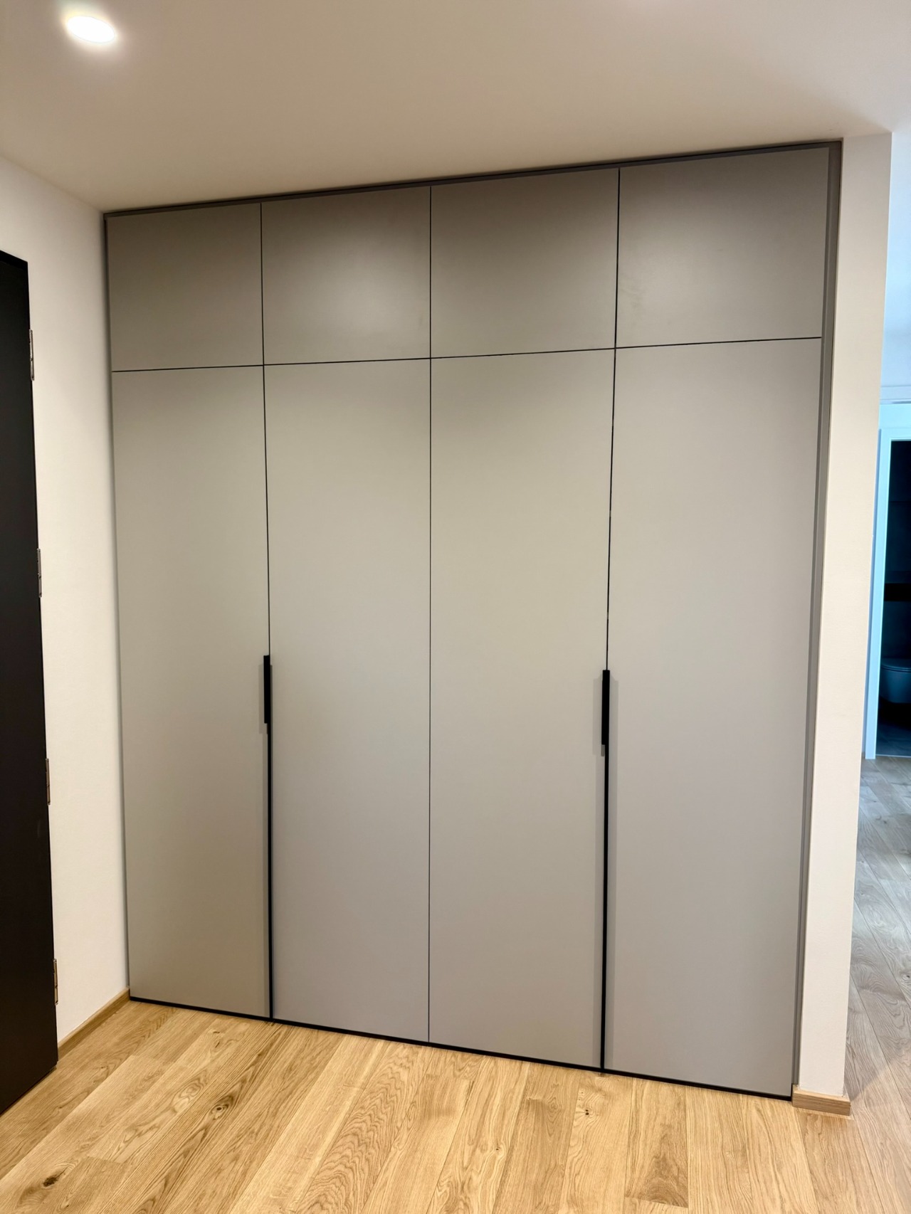 Celý interiér působí harmonicky, promyšleně a vzdušně. Díky zakázkovému zpracování se podařilo propojit jednotlivé zóny bytu do jednoho celku, který odpovídá každodenním potřebám rodiny. Klient ocenil nejen precizní provedení a čistotu detailu, ale také vstřícný přístup při plánování i montáži.